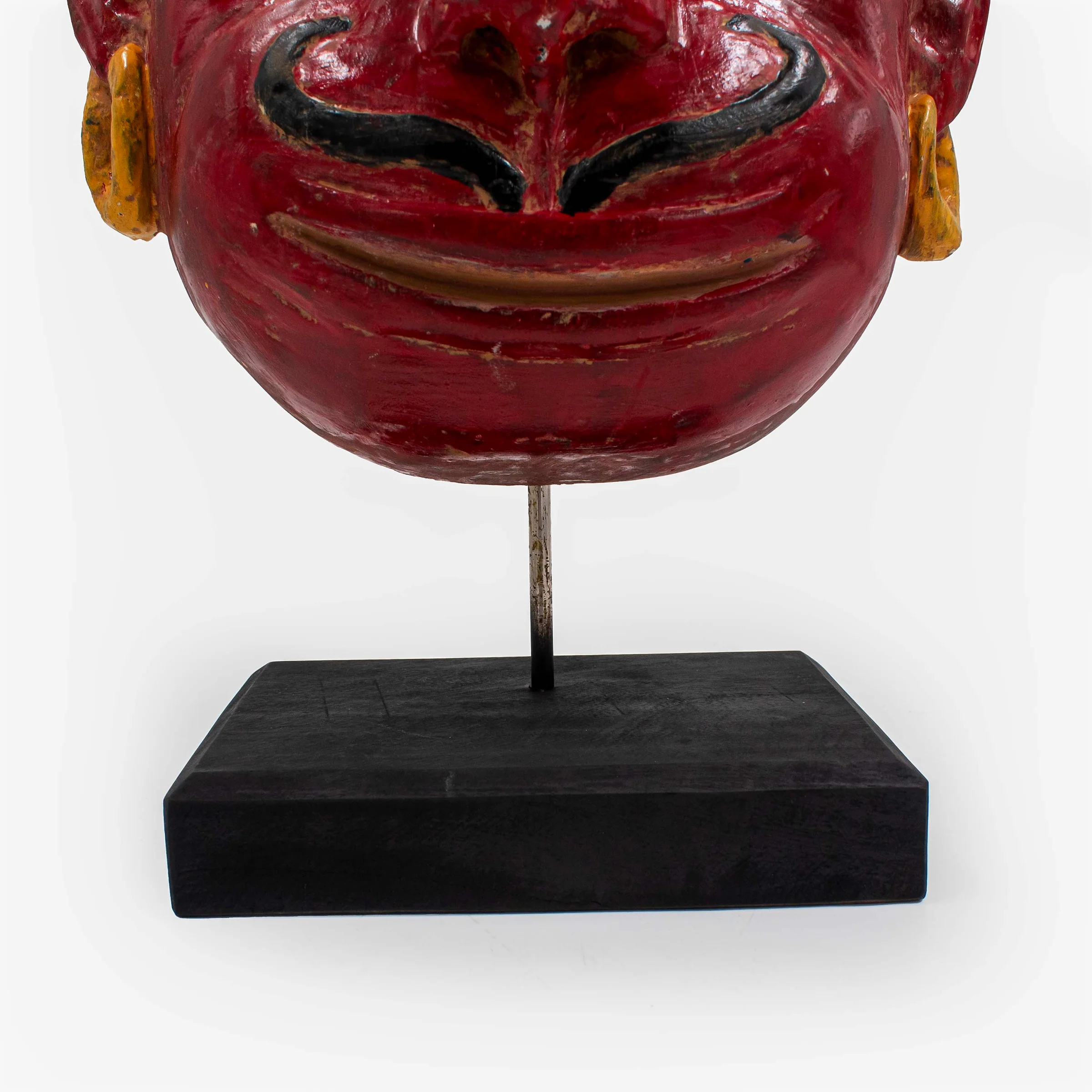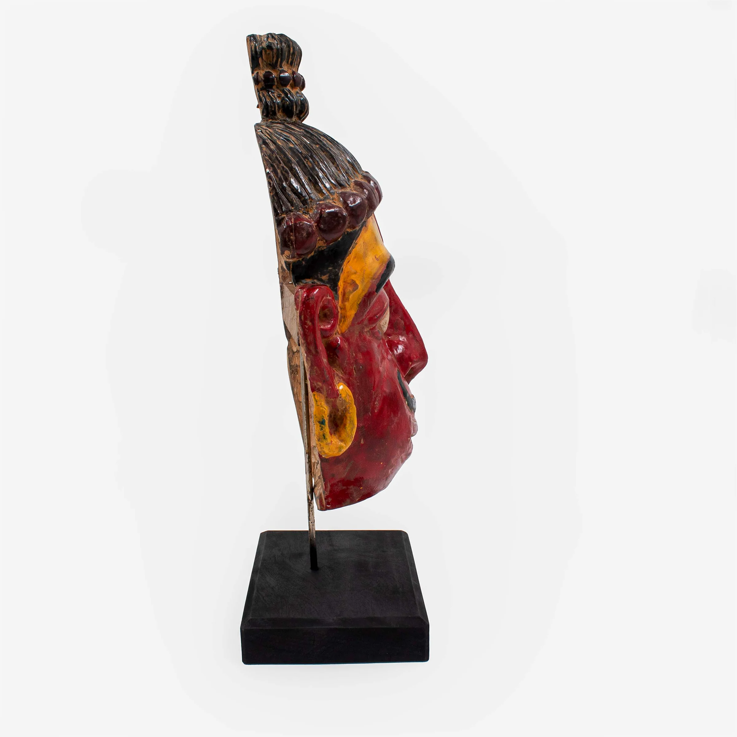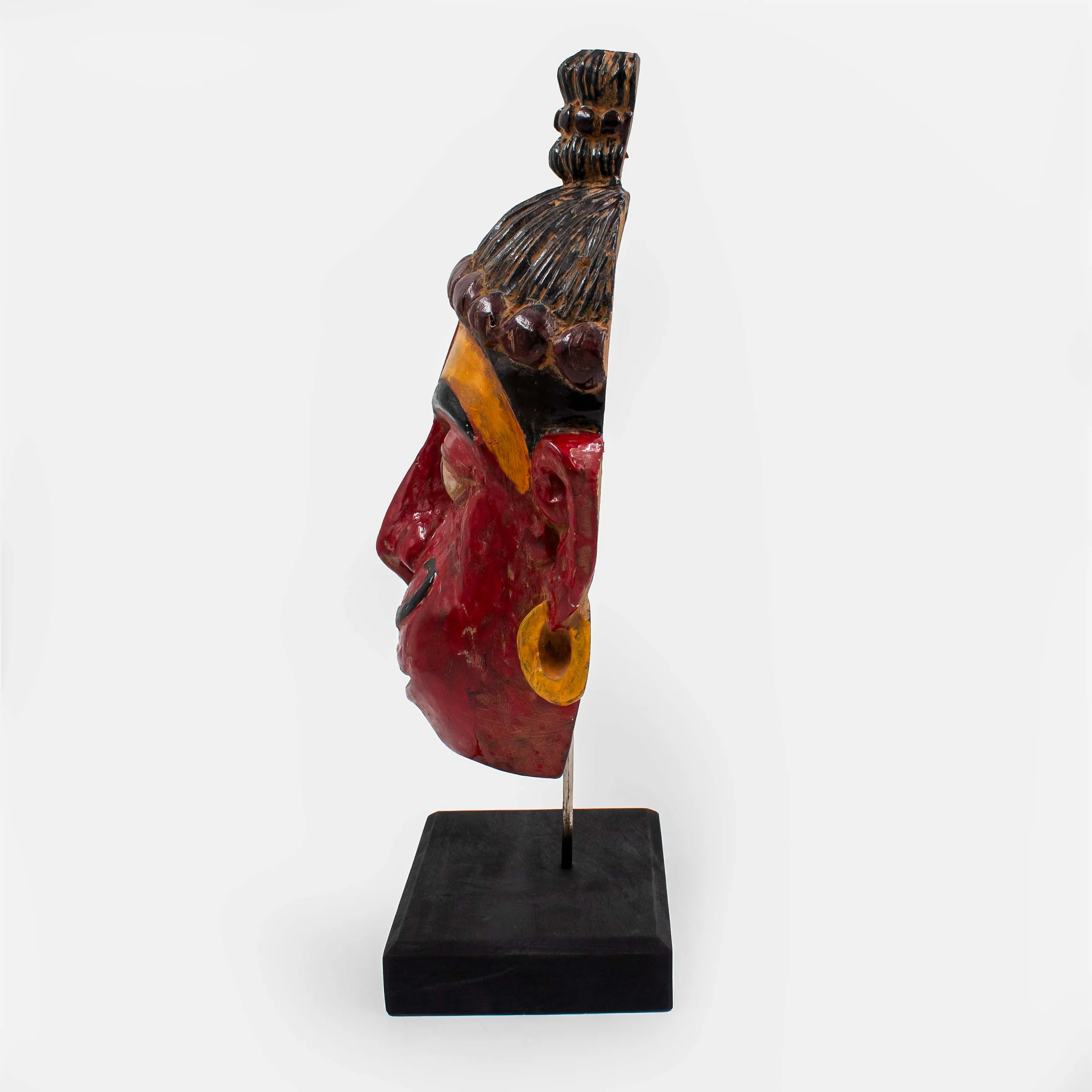Introducing the Rama Bhakta Mask with Stand, crafted meticulously from Sal Wood, this divine piece embodies the revered deity, Hanuman. Revered for his unwavering devotion to Lord Rama, Hanuman symbolizes strength, loyalty, and devotion. This intricately carved mask captures the essence of Hanuman's divine presence, with attention to detail that accentuates his iconic features and expression. The accompanying stand adds an elegant touch, allowing for prominent display in any space, whether at home, in a meditation room, or as a centerpiece in a spiritual setting. Each curve and contour of the mask reflects the artisan's dedication to preserving the essence of Hanuman's character, making it not just a decorative item but a profound symbol of faith and reverence. Embrace the aura of devotion and spirituality with this exquisite Rama Bhakta Mask with Stand, a timeless addition to any sacred collection.